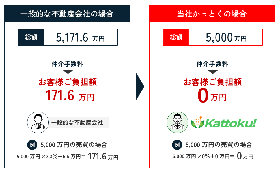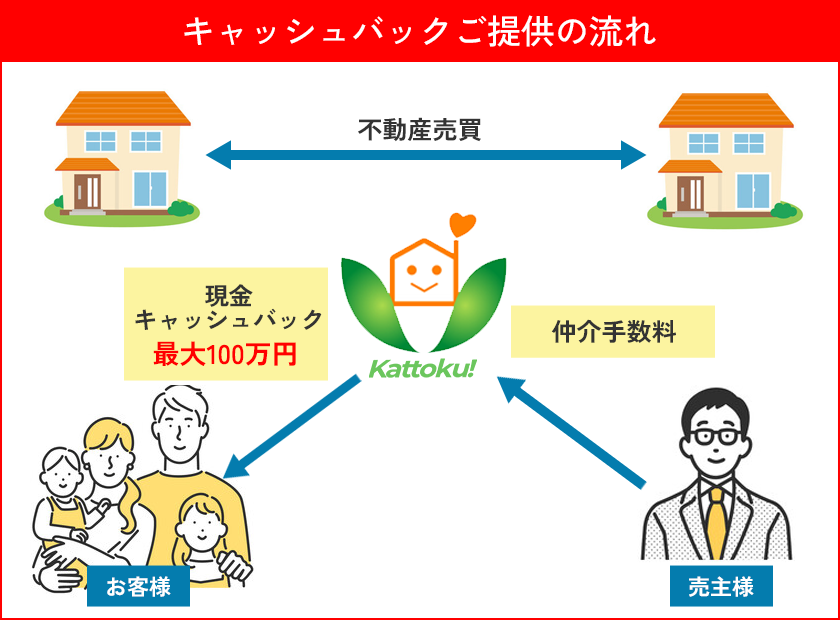 当社【かっとく!】は、売主様からの仲介手数料や日頃の企業努力により、お客様が仲介手数料無料で希望の物件をご購入いただける仕組みを作りました。