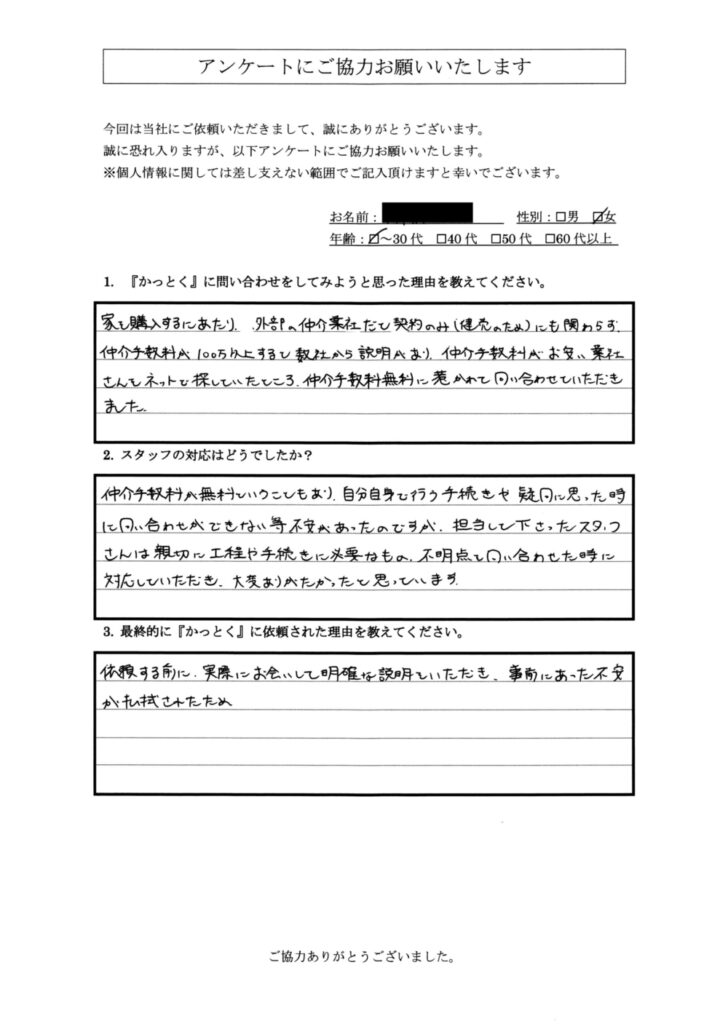 - A:インターネットで住まいを探していた際、広告で流れてきた仲介手数料無料の文字に興味を持ったからです。