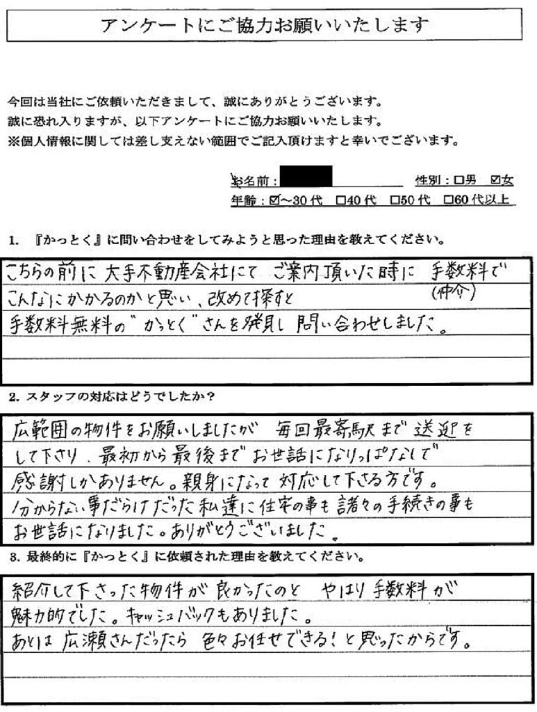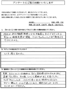 初めは会社名を知らなかったので少々不安でしたが、そこらの仲介会社よりも良い仕事されていると思います。