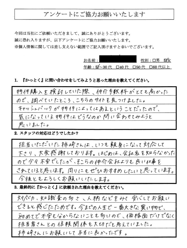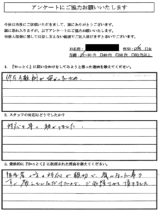 担当して下さった柿崎さんは、いつも親身になって対応してくださり、大変感謝しております。