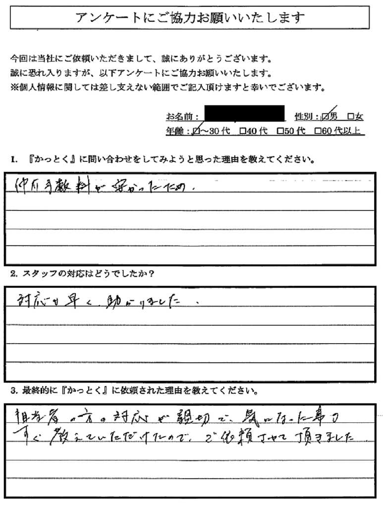 - Q3:最終的に『かっとく』に依頼された理由を教えてください。
