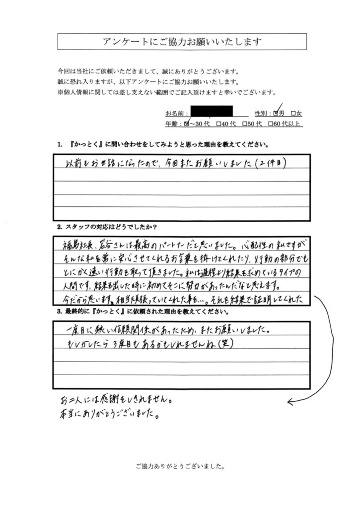 - Q3:最終的に『かっとく』に依頼された理由を教えてください。