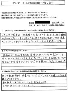 - A:手数料無料の業者があると思い探していた所、無料なことに加え、キャッシュバックも行っていて、かっその仕組みがHPで公開されていたので、問い合わせてみようと思った。