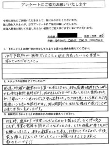 - A:迅速、的確で顧客のことを第一に考えて下さり、本当に感謝の気持ちでいっぱいです。