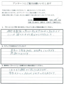 - A:本当に丁寧な対応、お仕事をしていただき感謝しております。