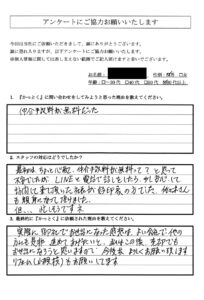 お褒めのお言葉を頂くサービスができたこと、新しい門出のお手伝いができたこと、大変嬉しく思います。ご不明な点、ご相談ごとがございましたら、お気軽にご連絡ください。